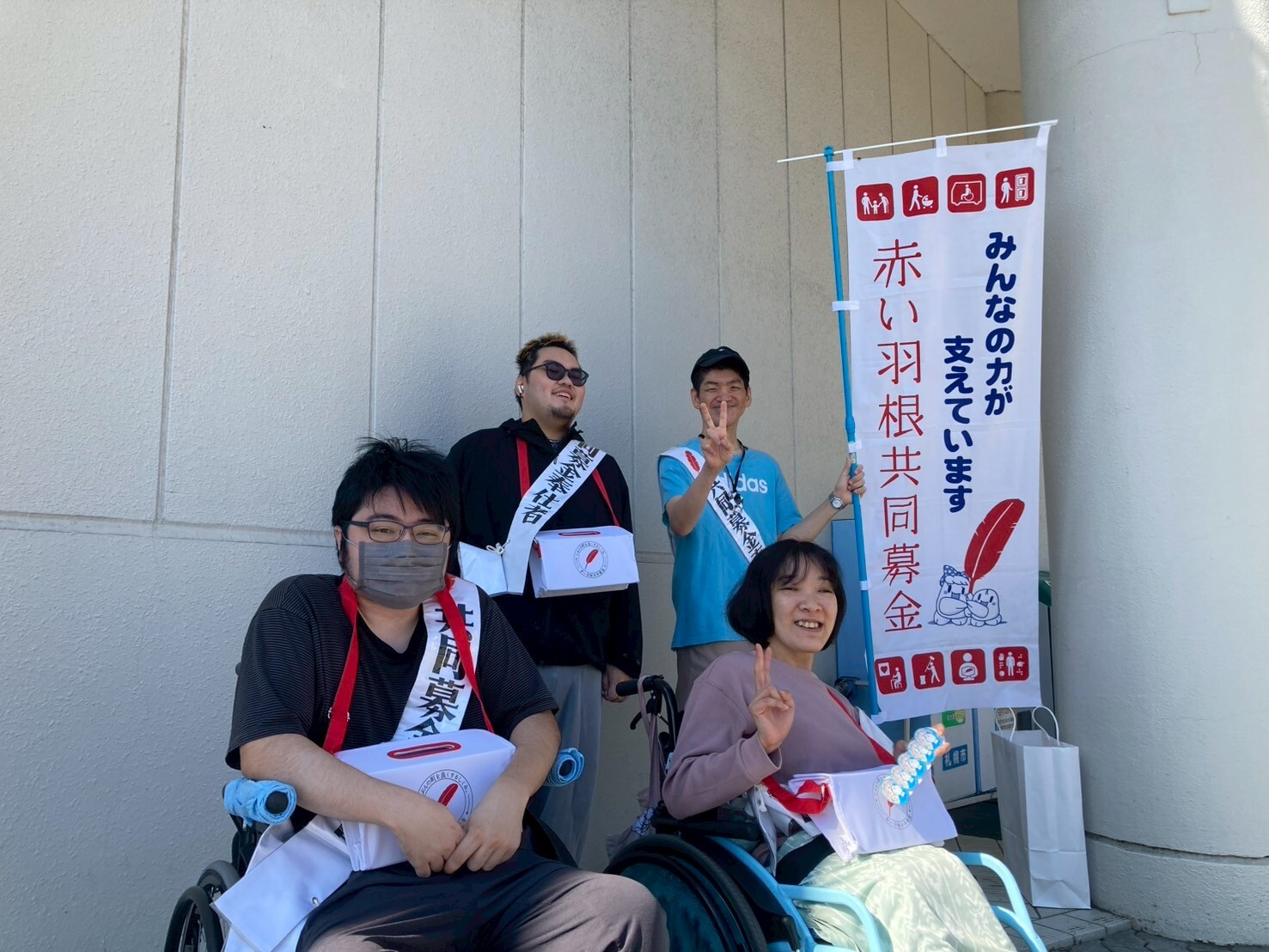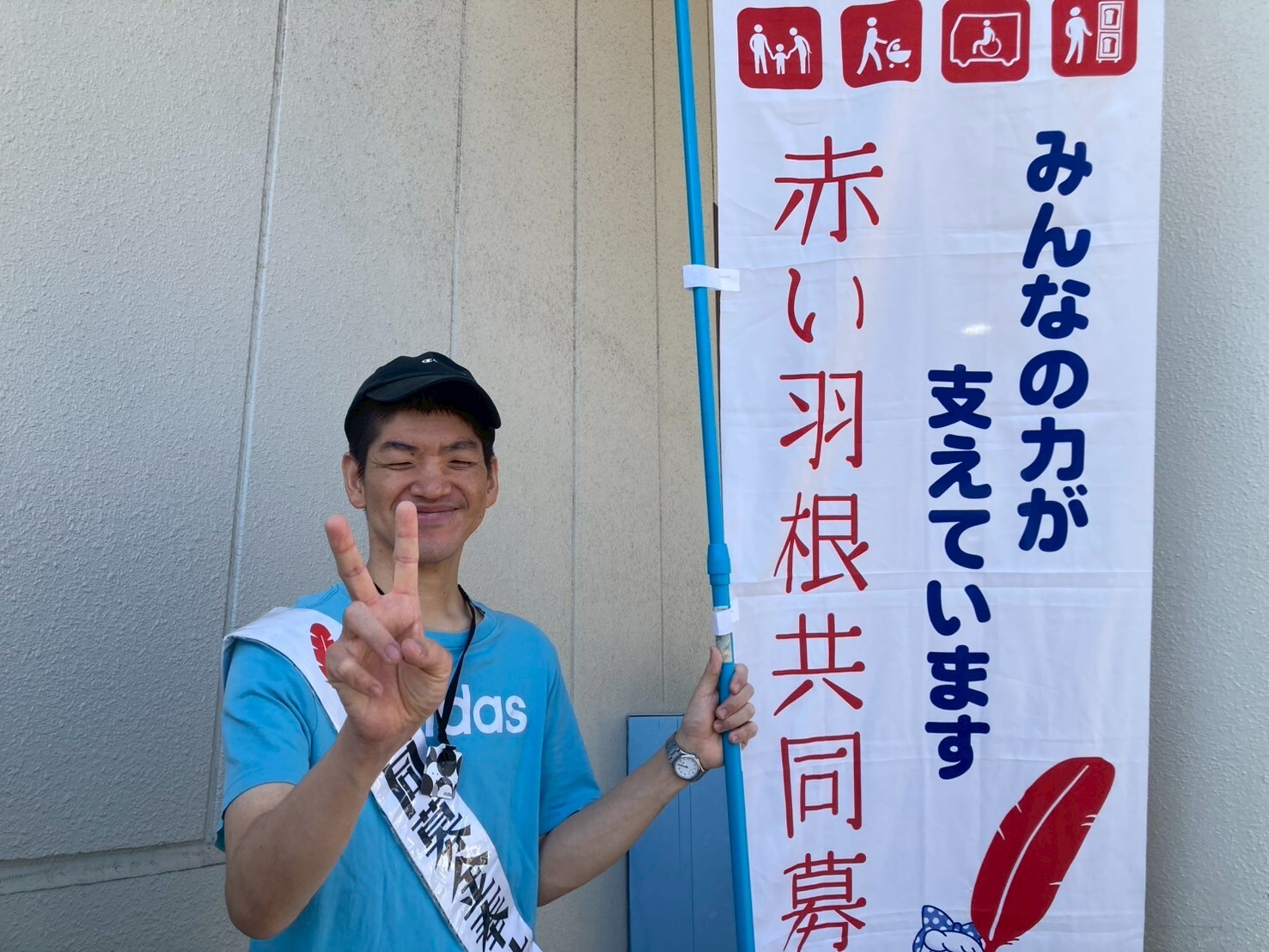 アンビシャスの近くにありますスーパーで赤い羽根共同募金の活動をしました。