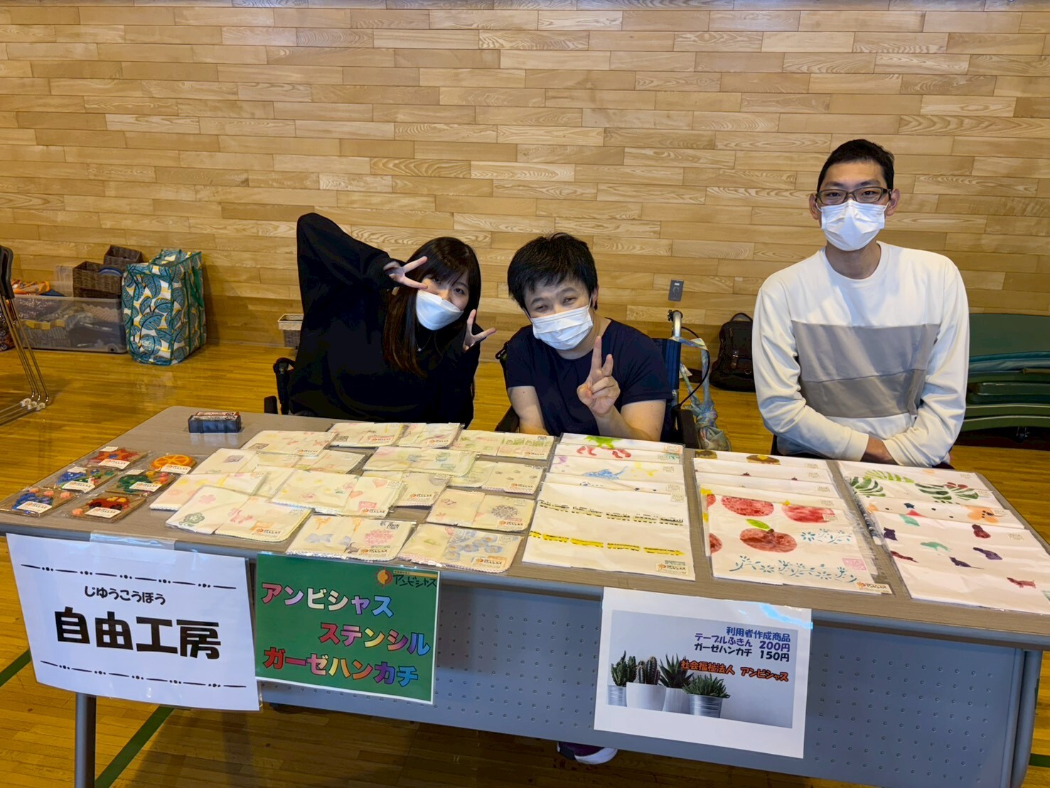 ステンシルやガーゼハンカチなど利用者さんが作った商品を出展しました!!!